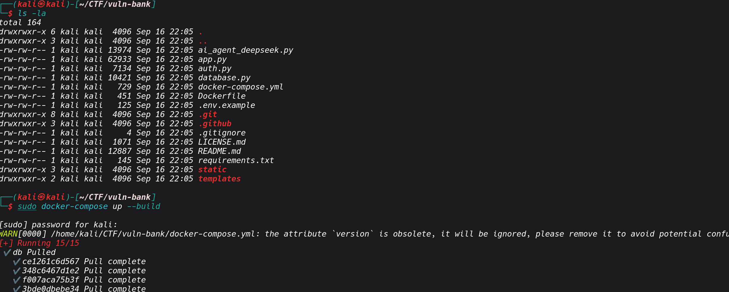 sudo docker run -it --rm -p 5000:5000 vuln-bank