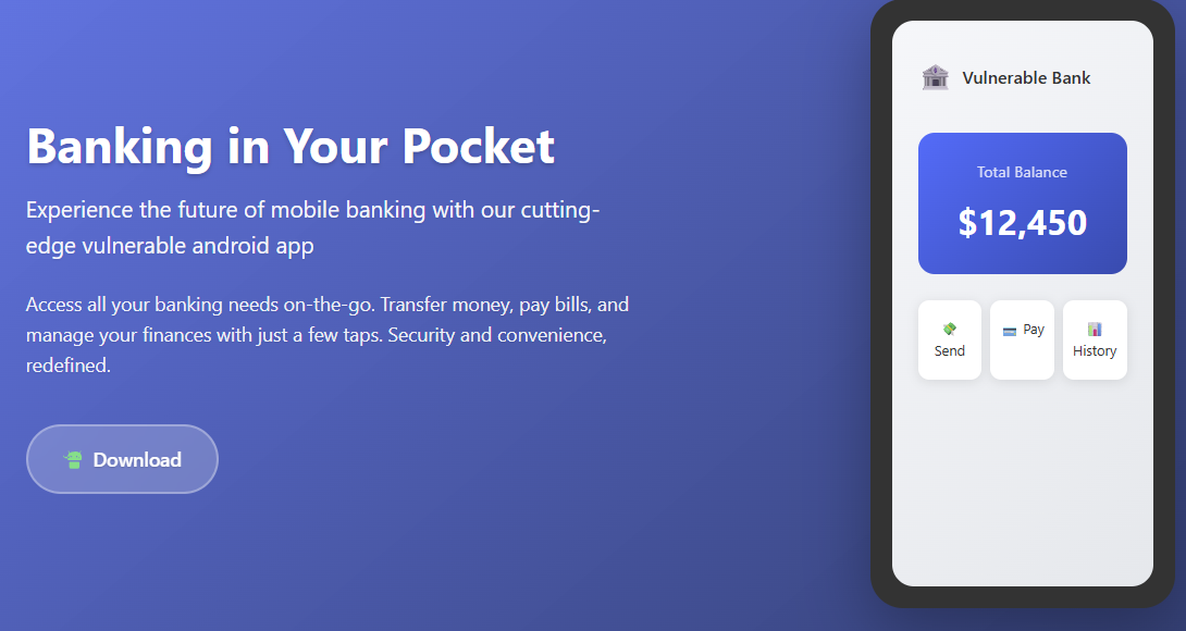 In addition to the web application, the lab also has set of vulnerable APK. This opens up an entirely different attack surface, mobile security testing. Unlike the web interface, mobile apps introduce unique vectors such as local storage issues, insecure use of device permissions, and reverse engineering opportunities so it will be good to explore that as well.