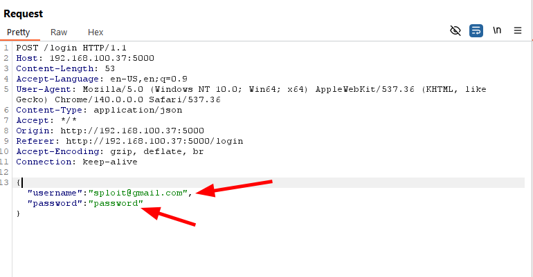With the registration complete, the next step is to authenticate and explore the login functionality. Since login endpoints are high-value targets for attackers, I decided to test for potential SQL Injection (SQLi) vulnerabilities. I saved the login request (login.req) in my proxy tool, capturing the username and password parameters in the POST body. These fields are prime candidates for injection since they are used directly in the authentication logic.