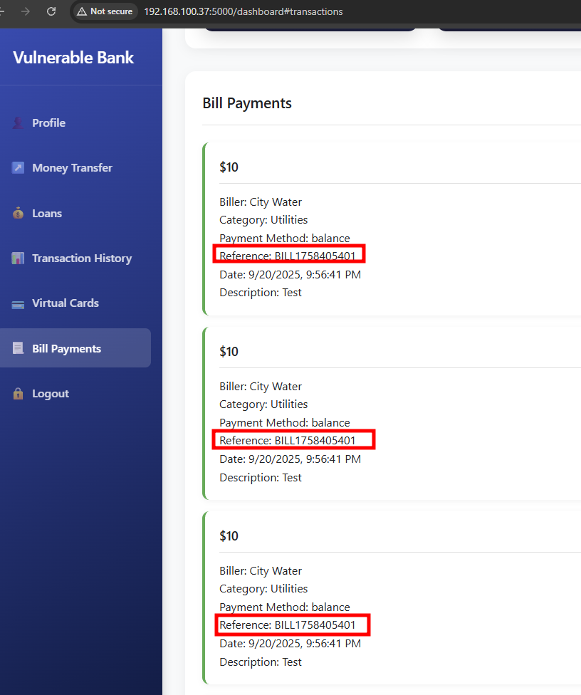 Issue 12: Insecure Direct Object Reference (IDOR) in Transaction History