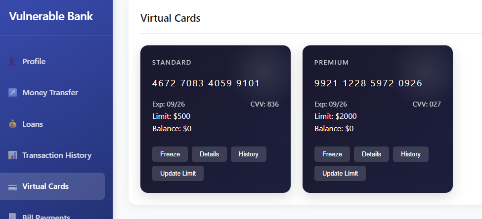 | 14 | Lack of Input Validation in Card Creation | Medium | /virtual-cards/create |