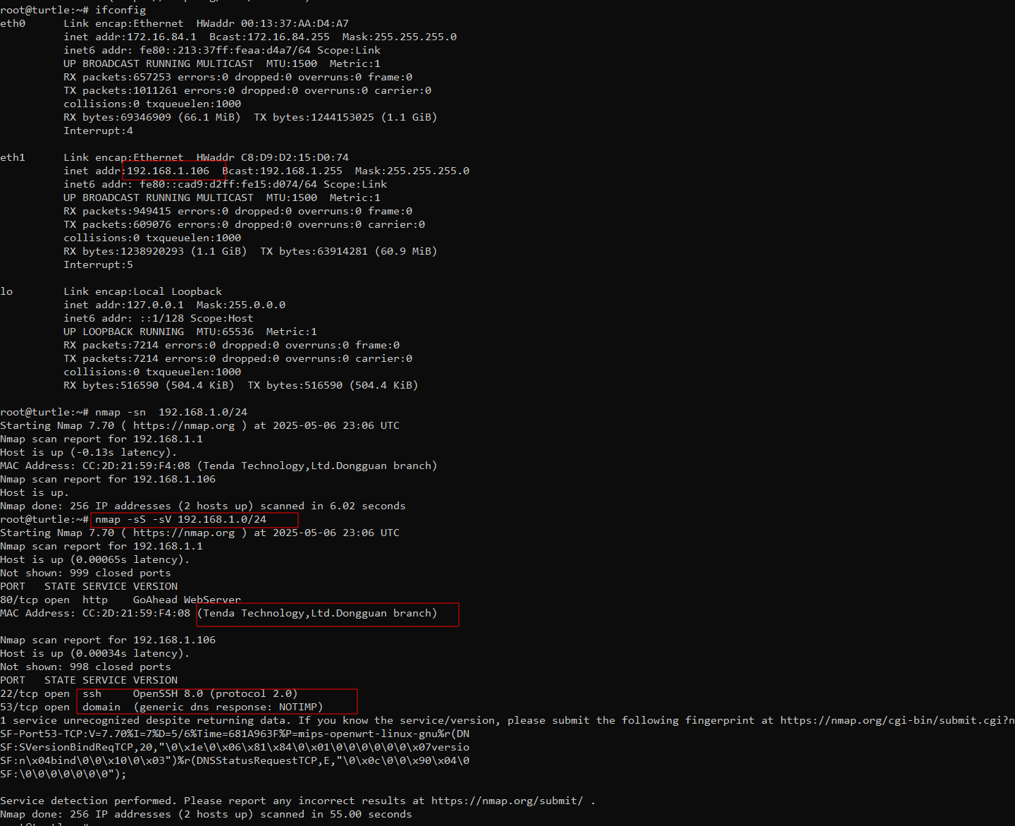 From the Turtle itself, we can run native Linux tools or install lightweight scanners. see below steps with nmap: