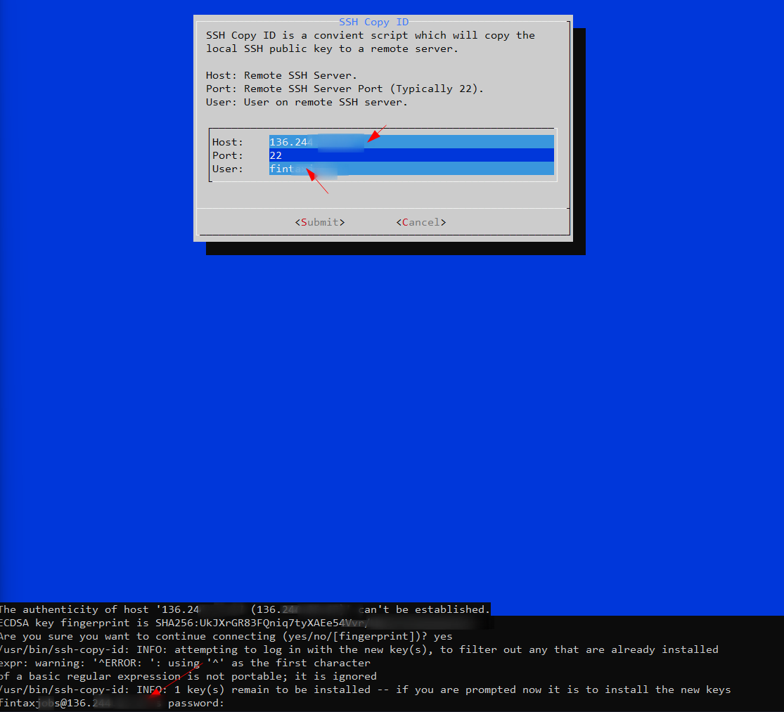 - Upload an existing private/public key using SSH-Copy ID-> copy_key